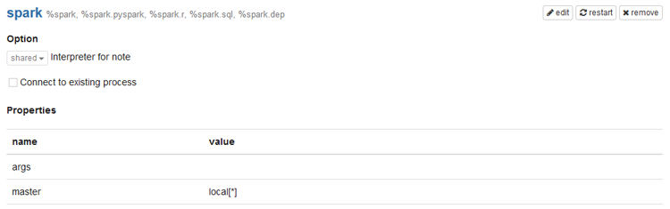 - Scroll down the list to the Spark Interpreter. As shown in the image below, the default Interpreter has its