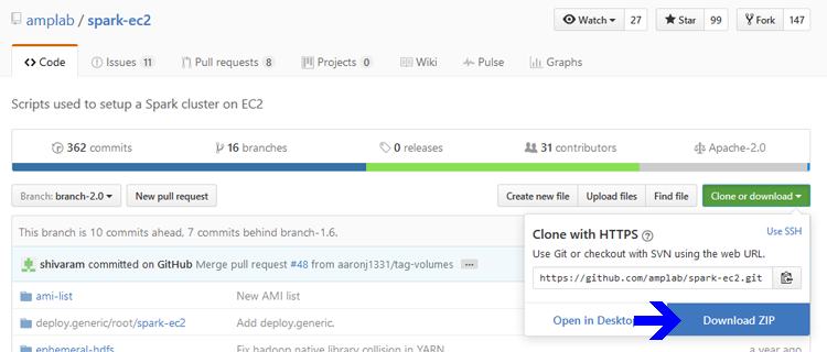 - If you are running Spark 2.x and need to download the script, visit the AMPLab spark-ec2 repository. In the